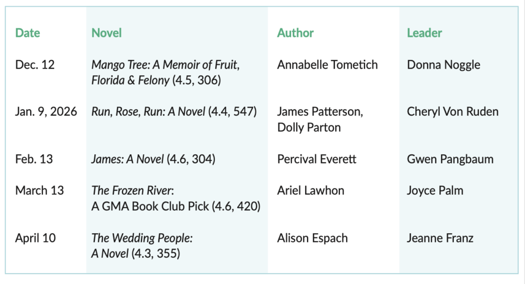 Greetings, I look forward to beginning our discussions in November. Thanks to all who have agreed to lead a discussion and all who join our discussions each month. The meetings are in the clubhouse, in the Garden Room the second Friday of the month at 2 p.m. Looking forward to seeing you there.