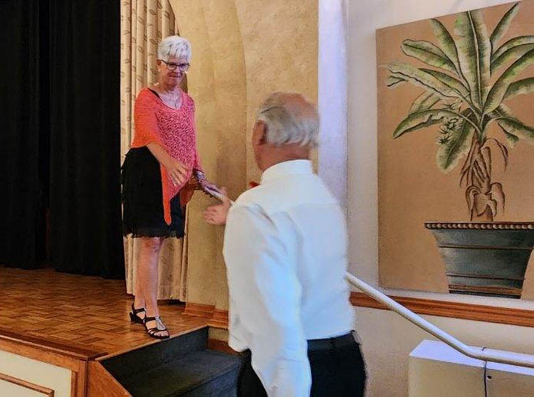 Models for the Fashion Show generally go to the store providing the clothes a week prior to choose outfits they would like to model, one casual outfit and one dressy outfit. The day of the show they arrive an hour before the show and are instructed on presenting the clothes on the stage and throughout the venue; there are several steps to exit the stage and a host is arranged to help navigate the steps as needed.