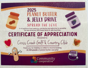 Thank you, Cross Creek members and friends, for your incredible support of the annual Share the Love PB & J Drive! Thanks to your generosity and the overwhelming response from the community, the drive reached a record-breaking total of 22,350 pounds of peanut butter and jelly collected—the largest drive to date! This effort represents thousands […]